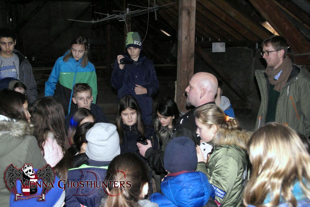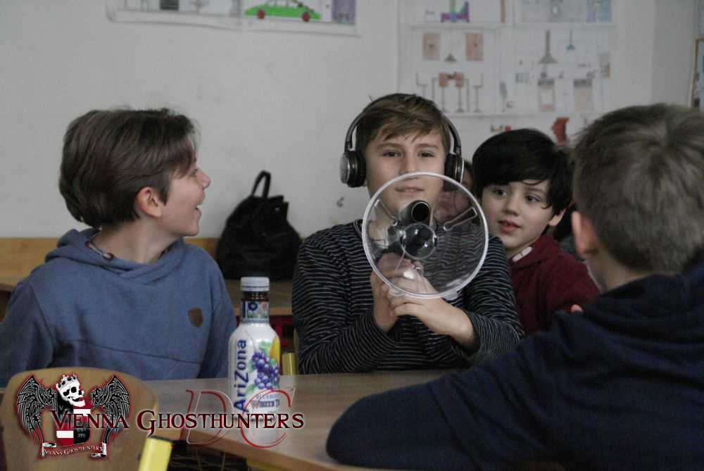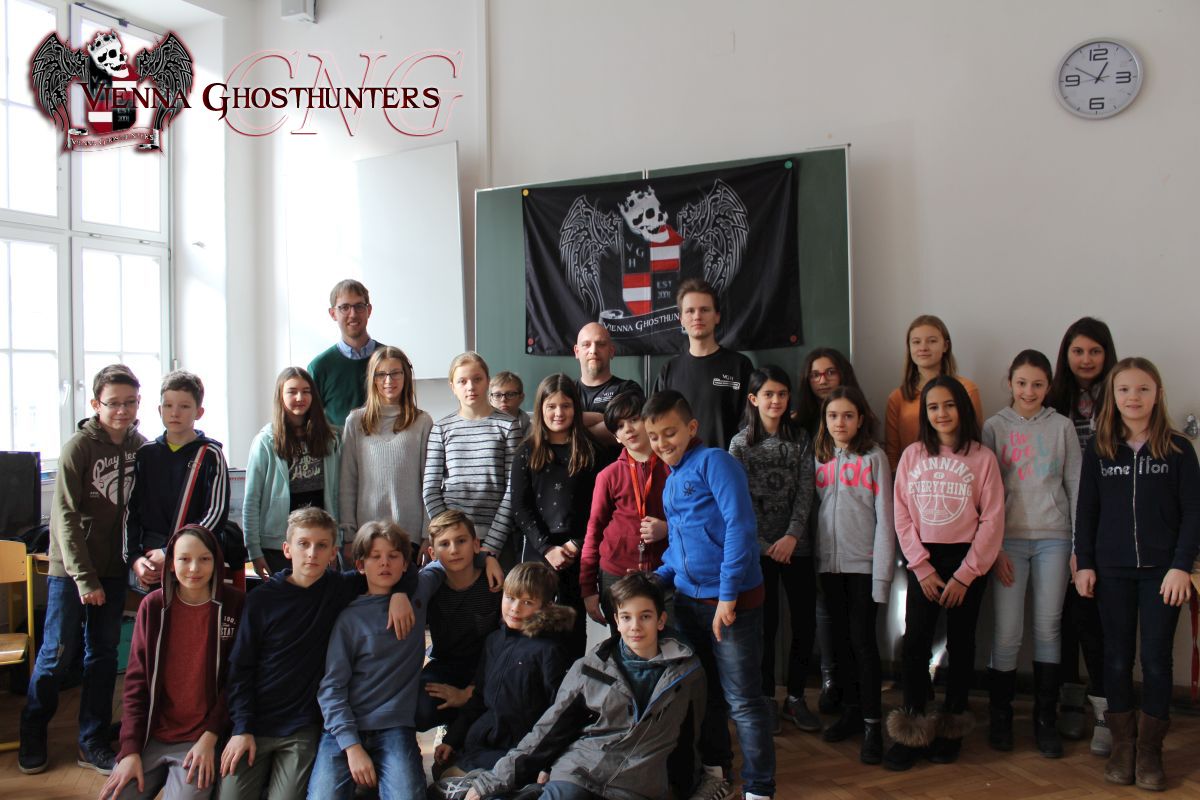 Im Zuge der Projekttage "Unser Planet", wurden die Vienna Ghosthunters von Mag. Christian Jordan-Lichtenberger (Fachlehrer für Englisch und Spanisch) für einen zweittägigen Workshop gebucht. Aufmerksam auf die Geisterjäger wurde Mag. Jordan-Lichtenberger durch ein Radiointerview vom 16.11.2017.Der Andrang auf den Geisterjäger-Workshop war enorm und es wurden 2 Gruppen zusammengestellt; bunt gemischt aus mehreren Unterstufenklassen (10 -12 jährige Mädchen und Buben).