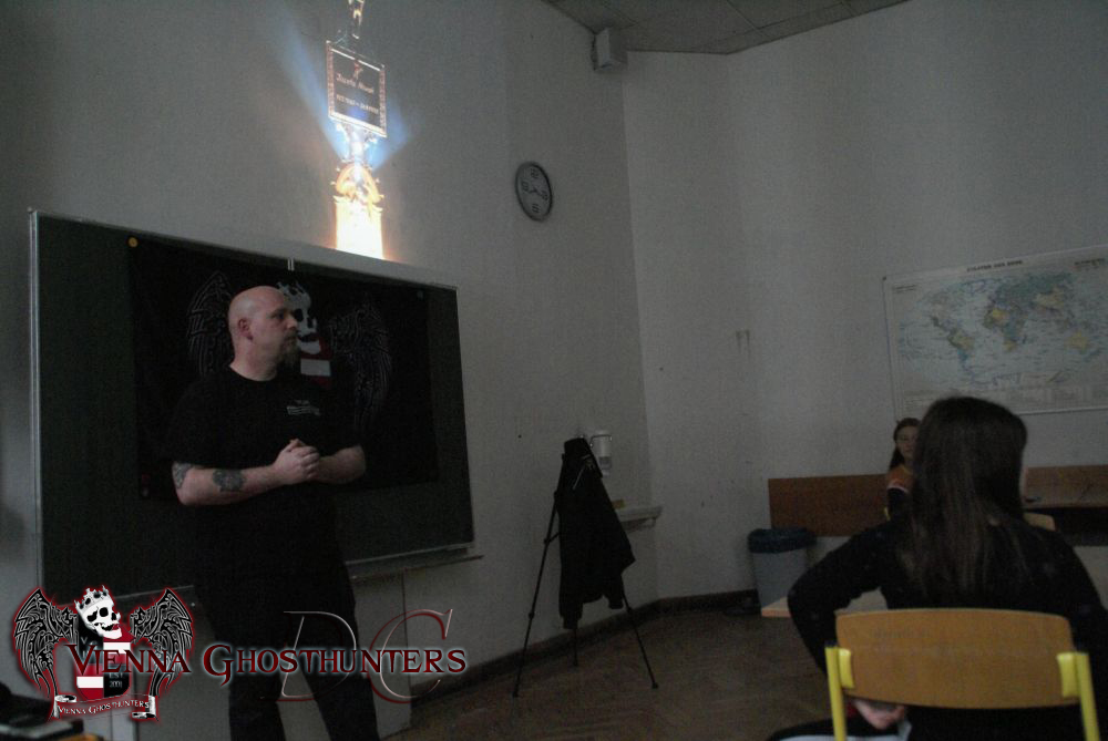 Nach einer kurzen Vorstellungsrunde der Geisterjäger, wurde der Tätigkeitsbereich des Vereines vorgestellt, sowie die Schwerpunkte "Paranormales (inkl. Begriffserläuterungen)", "Energie", "Strahlen" "Lichtspektrum", "Geister", "Psychologie" behandelt. Abgerundet wurden diese Schwerpunkte mit Anschauungsmaterialien sowie Fallbeispielen.