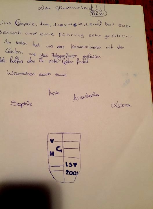 Nach einer längeren Pause, ging es dann auf den schuleigenen Dachboden, wo sich die Kinder als Geisterjäger versuchen konnten, mit ziemlich interessanten Ergebnissen.