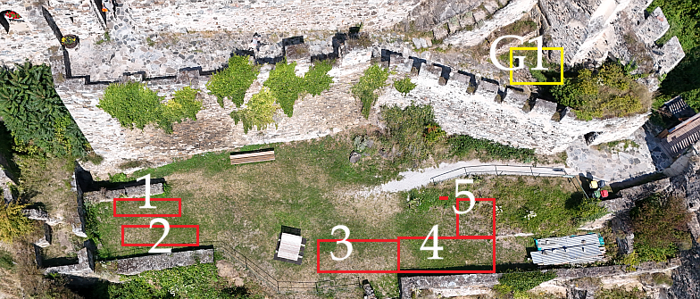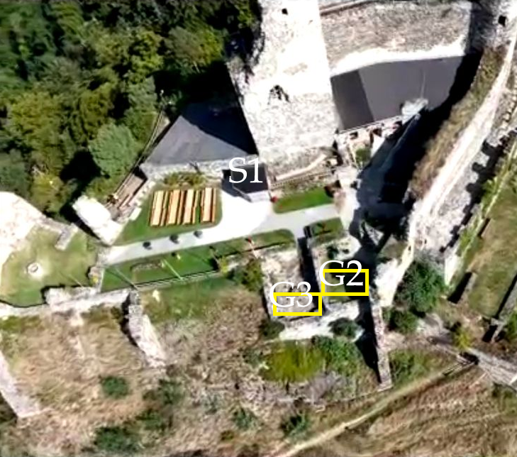 Beachten Sie, dass man zwar bis zur Ruine zufahren kann, insbesondere für Ladetätigkeiten, Ihren Standplatz erreichen Sie jedoch über eine Brücke, die ausschließlich bis 600 kg tragen kann!